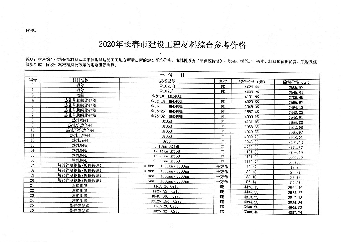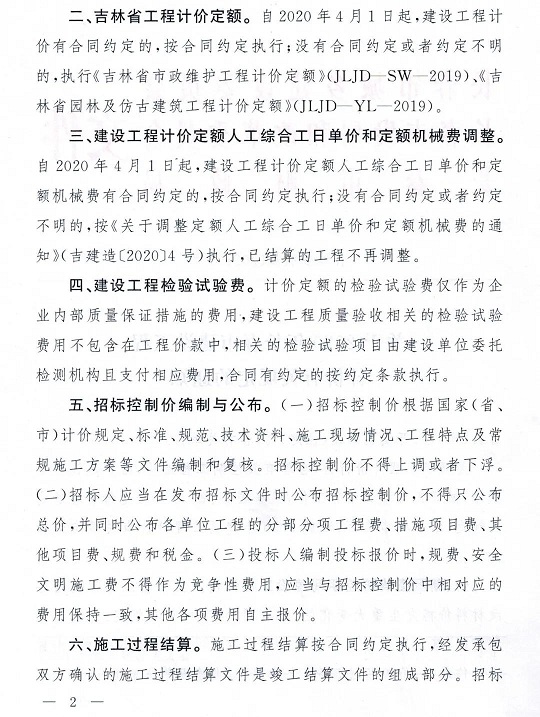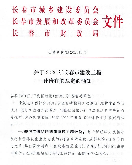 行业动态|2020年长春市结算文件正式发布